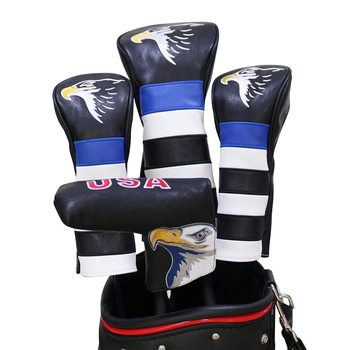 OEM design personalizado águia temático impermeável PU Leather Golf Club Headcover Set inclui motorista Fairway Wood & Hybrid